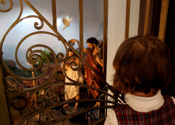 There are some interesting grotto spaces at the entrance to the church. I’m not going to lie: the kids thought they were creepy. Okay. And while, I’m being truthful: so did I. There are kind of scary statue heads of Christ and a few other less-than-settling images. I’m not sure if something can be equal in kitsch, charm and being the stuff of nightmares – but that’s where I’d put a few of the scenes in the grottos.